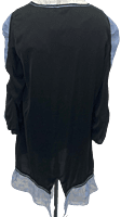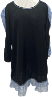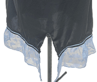 Black 1920's style dress with long sleeves and periwinkle detailing.