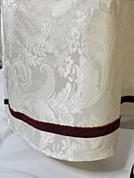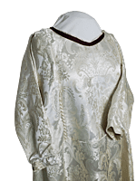 A white Medieval style robe with decorative and functional loops of side cinching.